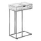 Monarch Specialties I 3772 Accent Table, C-Shaped, End, Side, Snack, Storage Drawer, Living Room, Bedroom, Metal, Laminate, White Marble Look, Grey