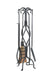 Made in a traditional technique of using four strands of iron to form the stand's legs, central open helix and four hanging hooks
