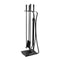 Set features four conventional fire-tending tools- Tongs, Poker, Hoe and Shovel that fit into notches in the stand