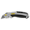 Instant blade change with the push of a button. Strong, durable construction combines a cast-metal core with bi-material soft panels for a sure grip.