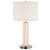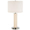 Diamond acrylic glass body. Metal base. White fabric drum shade. 6-foot long clear cord. From the Quilla collection by Lite Source.