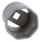 8 point, 3-1/8 inch (flat to flat) opening size with 5 inch depth; to determine socket size needed, measure locknut from flat to flat