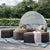 WEATHER-RESISTANT - Featuring a powder-coated aluminum frame, this patio canopy sectional daybed comes with an espresso brown synthetic rattan weave, with UV protection for years of outdoor use