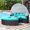 Modway Convene Wicker Rattan Outdoor Patio Retractable Canopy Round Poolside Sectional Sofa Daybed with Cushions in Espresso Turquoise