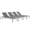 Modway Shore Aluminum Outdoor Patio Poolside Four Chaise Lounge Chairs in Silver Gray