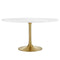 Modway Lippa 54" Mid-Century Modern Dining Table with Round White Top in Gold White