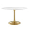 Modway Lippa 47" Mid-Century Dining Table with Round Artificial Marble Top in Gold White