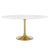 Modway Lippa 60" Mid-Century Dining Table with Round Artificial Marble Top in Gold White