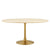 Modway Lippa 60” Oval Artificial Dining Table with Tapered, Metal Base, Gold Travertine