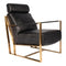 Chair; rustic black grain leather cushioned seat on a gold finished stainless steel frame, 17" seat height, 12" back height, 6" arm height