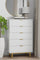 Features metal ball-bearing drawer glides which facilitate the smooth opening and closing of the drawers