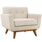 Modway Engage Mid-Century Modern Upholstered Fabric Accent Arm Lounge Chair in Beige, Armchair