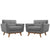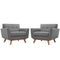 Modway Engage Mid-Century Modern Upholstered Leather Two Armchair Set in Expectation Gray
