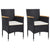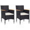 vidaXL 2 pcs Modern Patio Dining Chairs in Durable Black Poly Rattan with Acacia Wood Armrests and Removable, Washable Cushion Covers