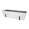 Large White Flower Box measures 35 1/4-in L x 9 1/2-in H, made of galvanized steel with a patina finish