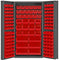 Heavy Duty Cabinet 14 Gauge 36 x 24 x 72 132 Red Bins 4 Inch Deep Box Doors with Louvered Panel Lockable Chrome Handle with Keys Gray