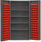 Heavy Duty Cabinet 14 Gauge 36 x 24 x 72 4 Adjustable Shelves 96 Red Bins 4 Inch Deep Box Doors with Louvered Panel Lockable Chrome Handle with Keys Gray