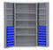 Heavy Duty Cabinet 14 Gauge 36 x 24 x 72 4 Adjustable Shelves 48 Blue Bins 4 Inch Deep Box Doors with Louvered Panel 6 Door Shelves Lockable Chrome Handle with Keys Gray