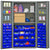 Heavy Duty Cabinet 14 Gauge 36 x 24 x 72 2 Adjustable Shelves 64 Blue Bins 4 Inch Deep Box Doors with Louvered Panel 6 Door Shelves Lockable Chrome Handle with Keys Gray
