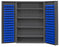 Heavy Duty Cabinet 14 Gauge 48 x 24 x 72 4 Adjustable Shelves 128 Blue Bins 4 Inch Deep Box Doors with Louvered Panel Lockable Chrome Handle with Keys Gray