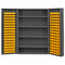 Heavy Duty Cabinet 14 Gauge 48 x 24 x 72 4 Adjustable Shelves 128 Yellow Bins 4 Inch Deep Box Doors with Louvered Panel Lockable Chrome Handle with Keys Gray