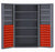 Heavy Duty Cabinet 14 Gauge 48 x 24 x 72 4 Adjustable Shelves 72 Red Bins 4 Inch Deep Box Doors with Louvered Panel 6 Door Shelves Lockable Chrome Handle with Keys Gray