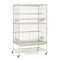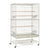 Dimensions: This white metal bird cage is 31 inches long x 20 ½ inches wide x 53 inches high with ½ inch wire spacing. The interior space for birds is 30 ¼ inches long x 20 ¼ inches wide x 40 inches tall.
