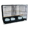 2 lift up front doors, 1 wire divider, 4 perches, 4 feeder cups (may be in clear or white), 4 feeder doors, pull out plastic tray for easy cleaning