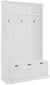 COASTAL STYLE: This hall tree, featuring a white finish and louvered accents, brings beachy vibes to your entryway. The metal cup pull hardware in brushed nickel enhances its coastal charm.