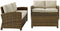 - TRADITIONAL OUTDOOR FURNITURE: Built to endure the elements, this patio loveseat set has a weather-resistant powder-coated steel frame and handwoven UV-resistant all-weather half-round resin wicker in a weathered brown finish.