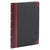 Black hardcover with sturdy red spine and corners; casebound cover allows book to lie flat