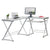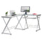 Techni Mobili L-Shaped Tempered Glass Top Computer Desk With Pull Out Keyboard Panel. Color: Clear