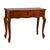 What a great piece for any room. The carving along with the queen Anne legs gives it an elegant look that will enhance the beauty of any room. Has two drawers to put pens and paper. Made from a hardwood with a mahogany finish.