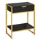Add instant style to a room with this contemporary multi-functional side/end accent table. It features a spacious rectangular table top with a warm cappuccino finish and one large storage drawer on metal glides with a simple gold metal handle on top. The open bottom shelf in the same finish is handy to store or display more items and the simple square gold metal supports tie it all together for in an effortless design. Bring this accent table into the bedroom as a chic nightstand, place it next to your modern sofa or arm chair as a useful side table. The compact size also makes it ideal for smaller spaces. Assembly is required Item 1 Dimension: 19.5" x 12.75" x 23.75", Weight: 19 lbs.