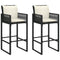 vidaXL Patio Bar Stools with White Cushions, Set of 2, Black Weather-Resistant Poly Rattan with Steel Frame, Outdoor Furniture with Armrests and Backrest, Stylish Seating for Patio, Balcony, Deck