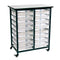Mobile Bin Storage Unit - Double Row with Small Clear Bins - Gray