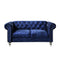 Dark Blue Velvet Tufted KD Loveseat - Blue