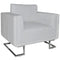 vidaXL Scandinavian-Modern Cube Armchair, White Leather Upholstered, Solid Wooden Frame with Chrome Feet, Comfort with High Tensile Pillow