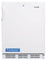 Freestanding ADA compliant refrigerator-freezer for general purpose use with dual evaporator cooling cycle defrost lock and white exterior