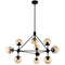 Glow Sputnik Style Chandelier - 10-Light Black Frame with Amber Glass Shades - Atomic Starburst Pendant Light for Dining Room, Kitchen Island