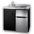 A great-looking and effective kitchen for any space: Kitchenette has a modern design with a jet-black, powder-coated metal cabinet, stainless-steel surface, and stainless-steel refrigerator doors. Push-to-turn knobs, indicator lights on the cooktop and a 4" high backguard help add protection.