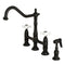 Kingston Brass KS1270PXBS Heritage Bridge Kitchen Faucet with Brass Sprayer, Matte Black