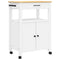vidaXL Solid Pine Wood Rolling Kitchen Trolley - White/Honey Wax Finish with Drawer, Cabinet, Hooks, 23.6"x15.7"x35.4"