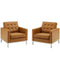 Modway Loft Tufted Vegan Leather Upholstered Living Room Armchairs in Silver Tan - Set of 2