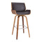 Armen Living Tyler 30" Bar Height Swivel Brown Faux Leather and Walnut Wood Bar Stool