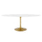 Modway Lippa 78" Oval-Shaped Mid-Century Modern Dining Table with Artificial Marble Top and Gold Base