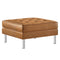 Modway Loft Tufted Button Faux Leather Upholstered Square Ottoman in Silver Tan