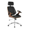 Armen Living Century Office Chair in Black Faux Leather and Walnut Wood, Chrome Finish