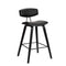 Armen Living Fox 25.5" Counter Height Black Faux Leather and Black Wood Mid-Century Modern Bar Stool