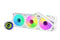 The pump cap has three interchangeable designs, each with a unique look and two rings of colors that can be individually controlled with different lighting effects.
